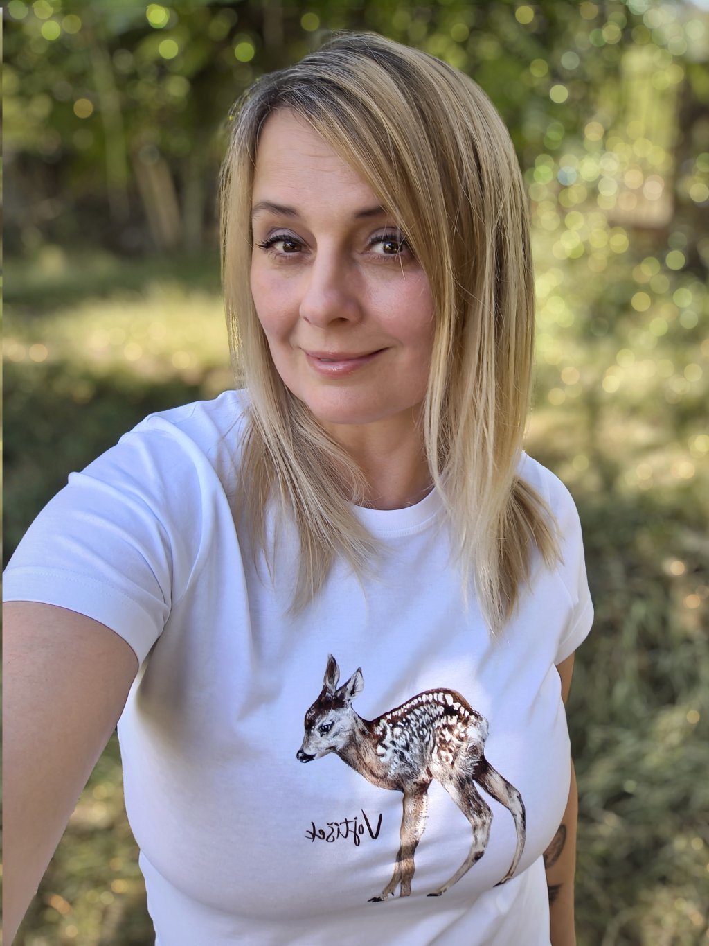 Krásné dámské bavlněné tričko s autorskou ilustrací Vojtíška. Obrázek je řešen formou nažehlovačky.