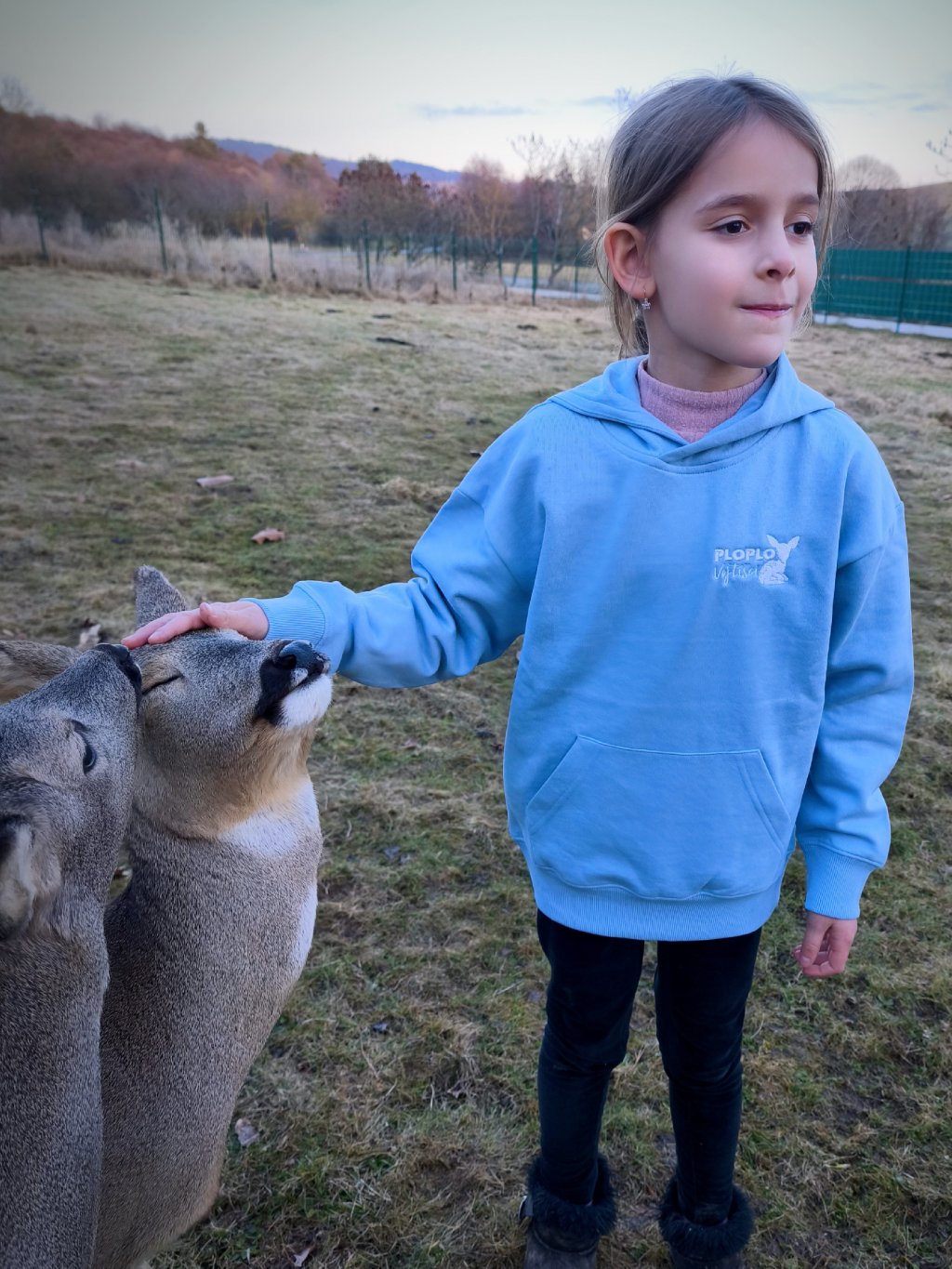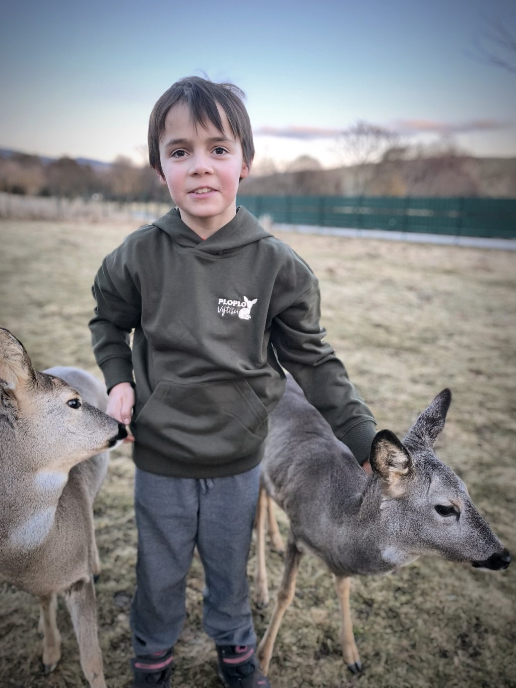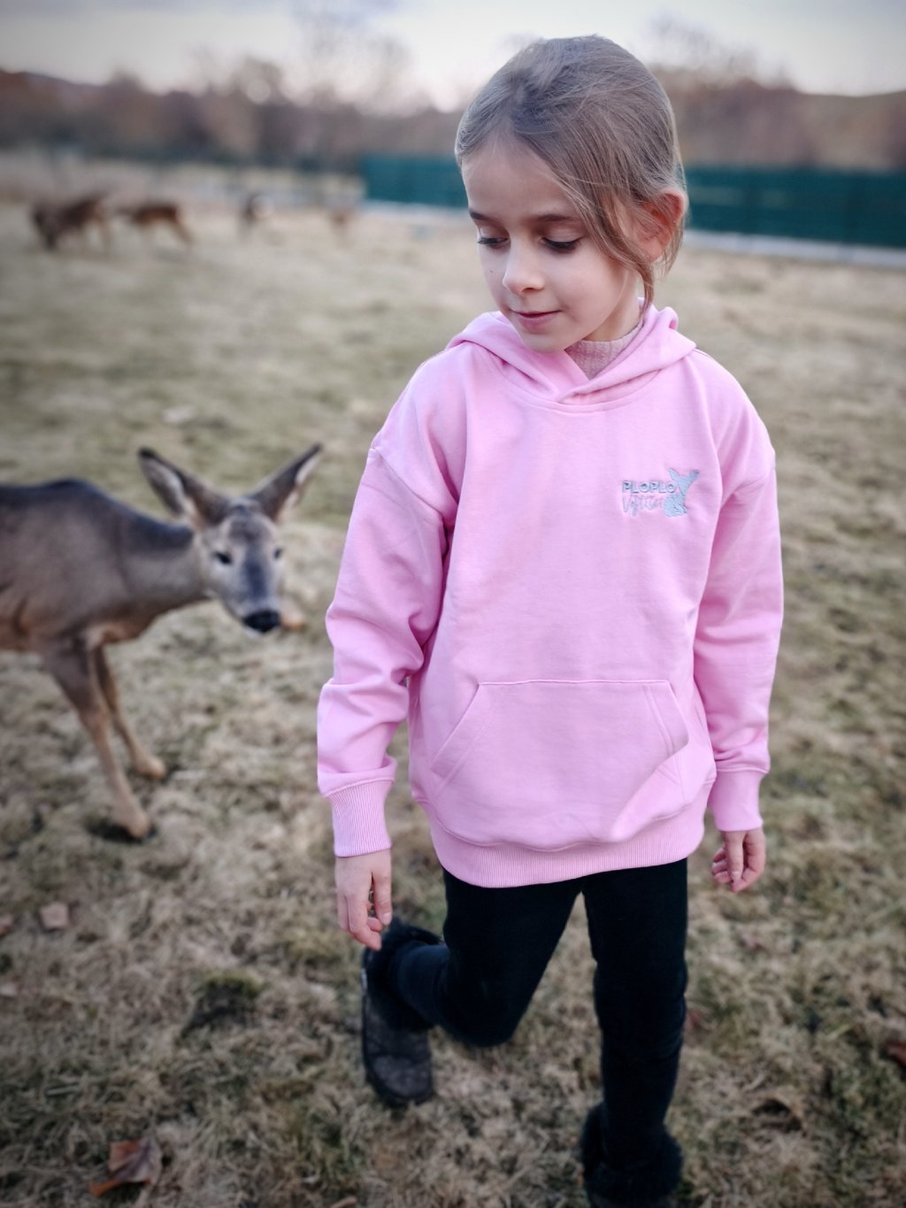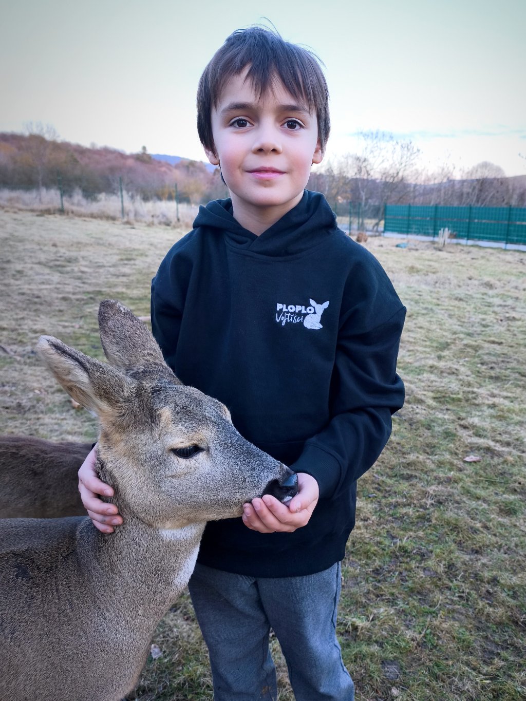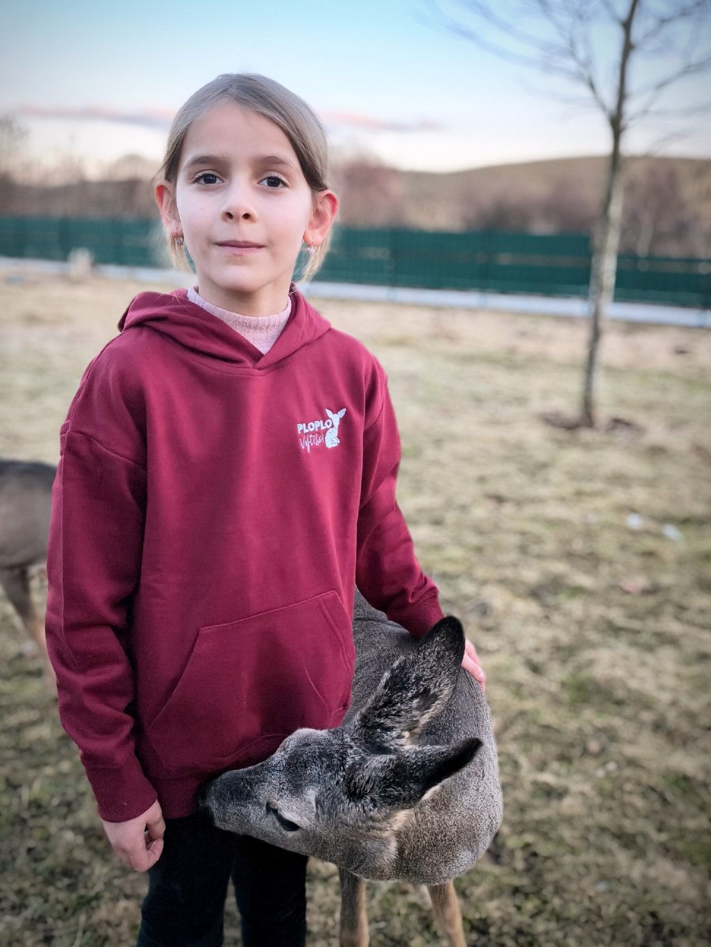 Úžasná ňuňací dětská mikina značky MALFINI s kapucí, klokaní kapsou a vyšitým logem PLO PLO Vojtíšci.