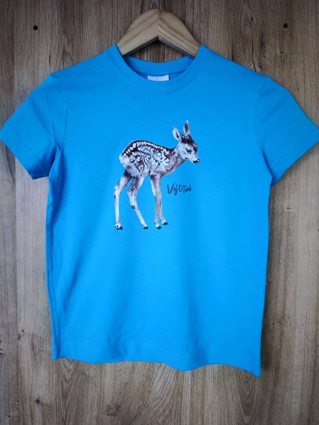 Krásné bavlněné tričko pro děti s autorskou ilustrací Vojtíška. Obrázek je řešen formou nažehlovačky.