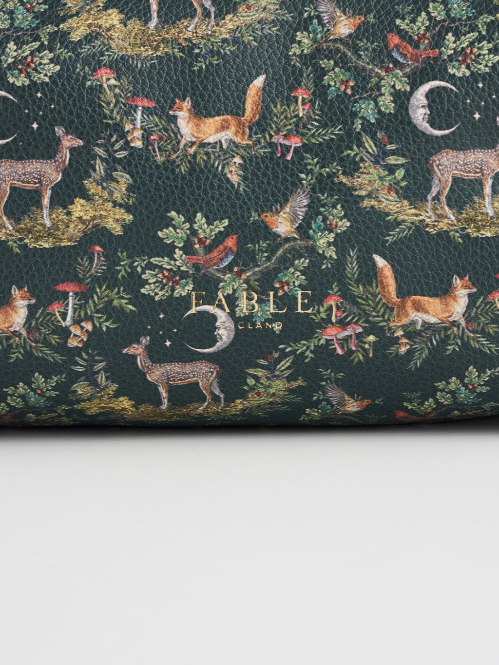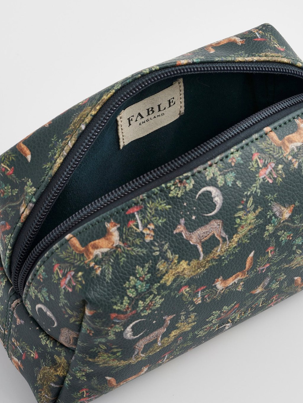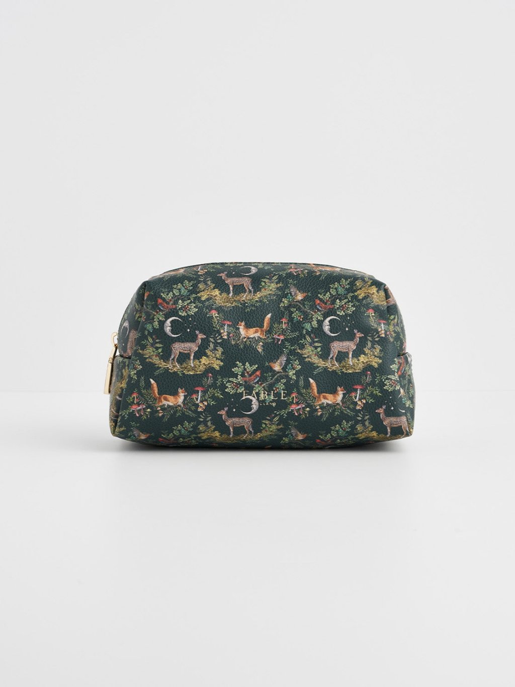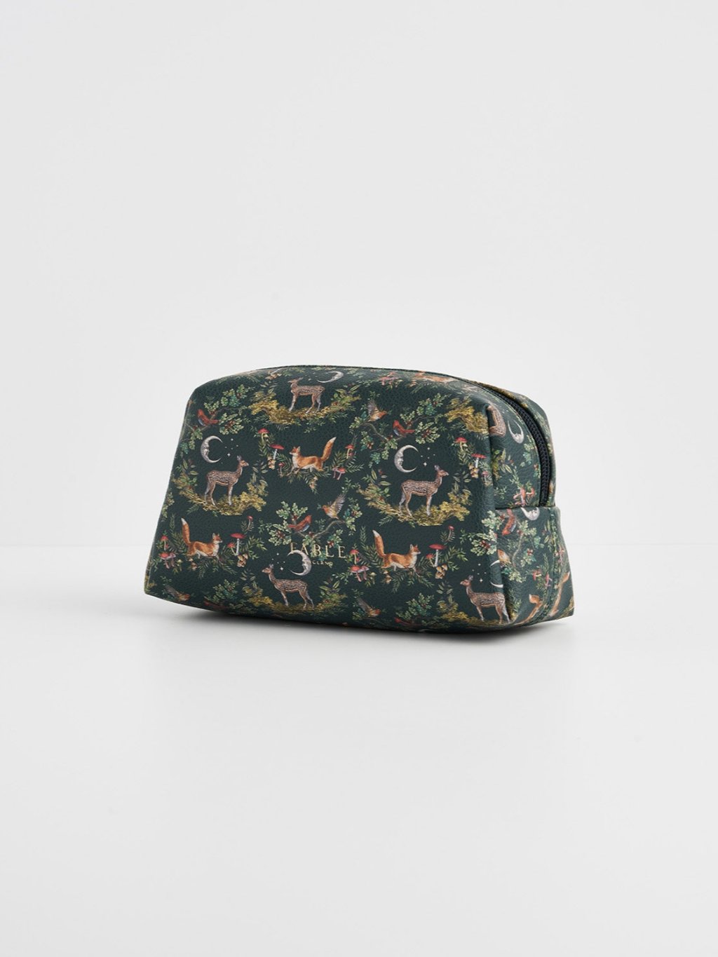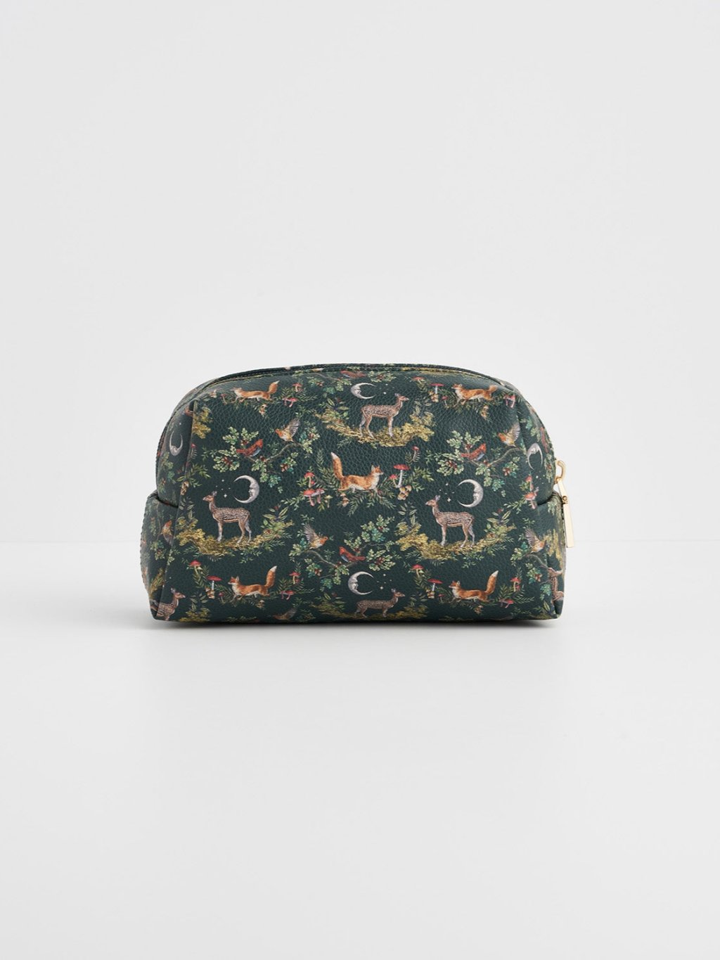 Kosmetická taštička nebo pouzdro na drobnosti v zelené barvě s motivem Do lesa, který vás přenese do lesního světa, kde se setkáte s Vojtíškem, liškou, sovou, a to vše za tajemného svitu měsíce a vesele vykukujících muchomůrek.
