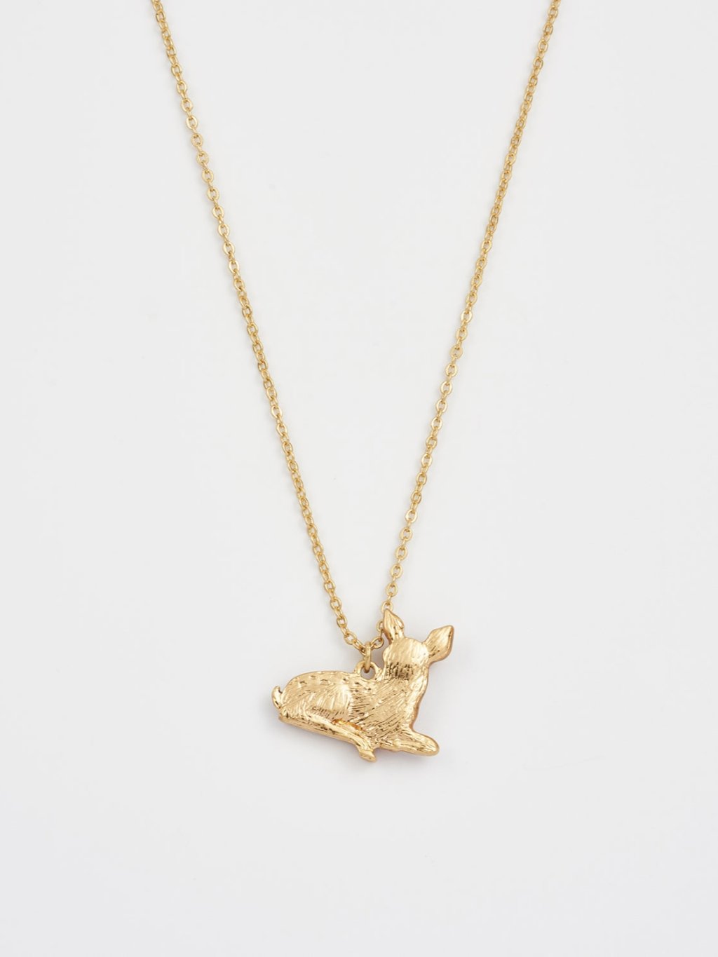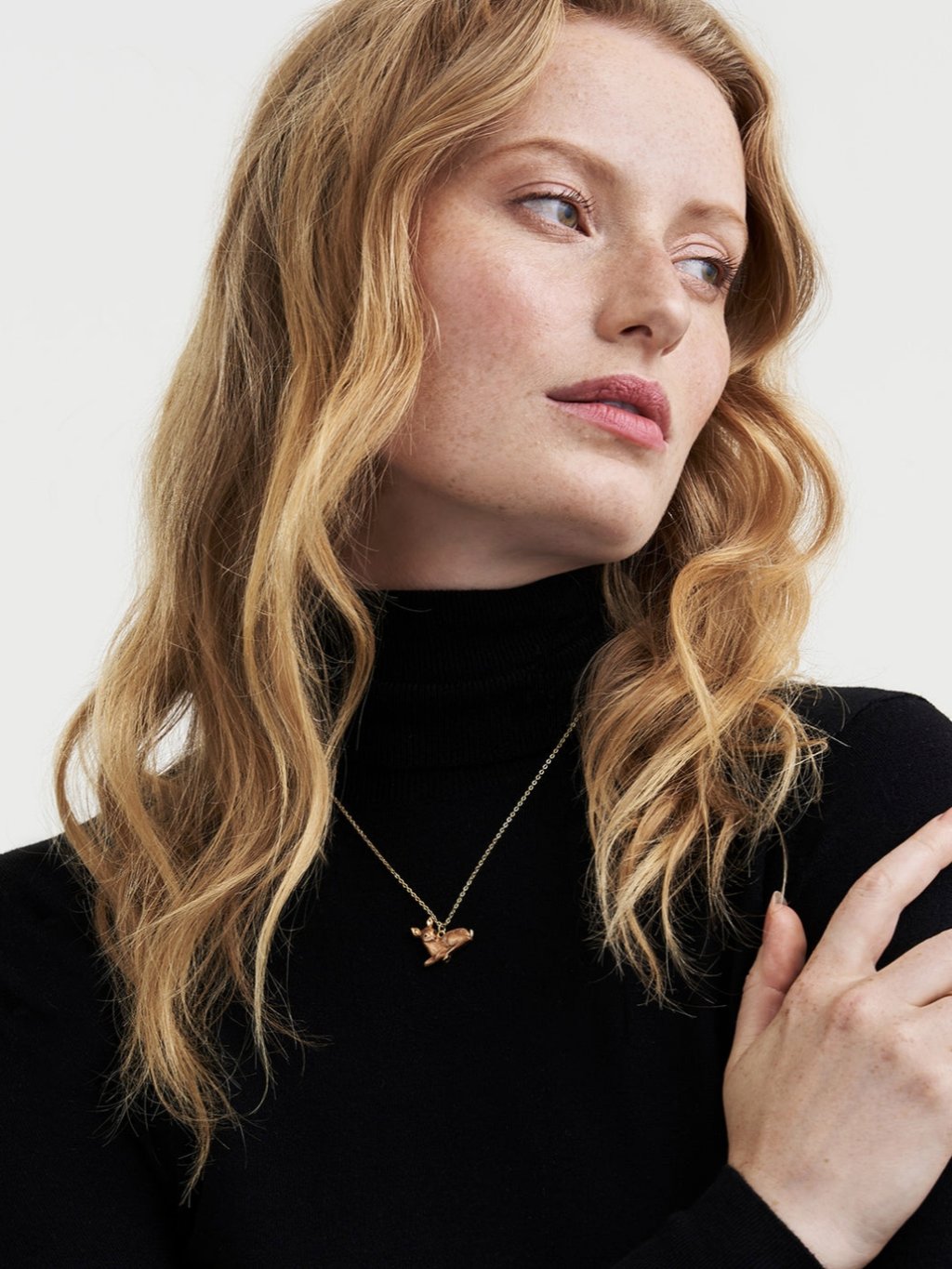 Krásná ručně vyráběná smaltová figurka Vojtíška odpočívajícího v klubíčku v kombinaci s pozlaceným řetízkem vytváří jedinečný šperk.