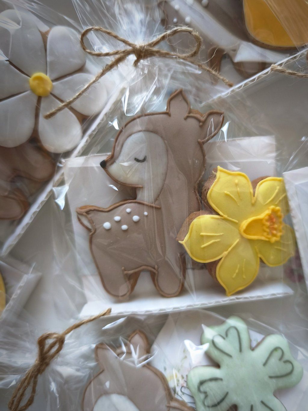Perníkové dekorace se srnečkou, které nám upekla paní Anežka. V dárkovém balíčku najdete dva perníčky, srnečku a jarní motiv. Náhodný výběr jarního motivu.
