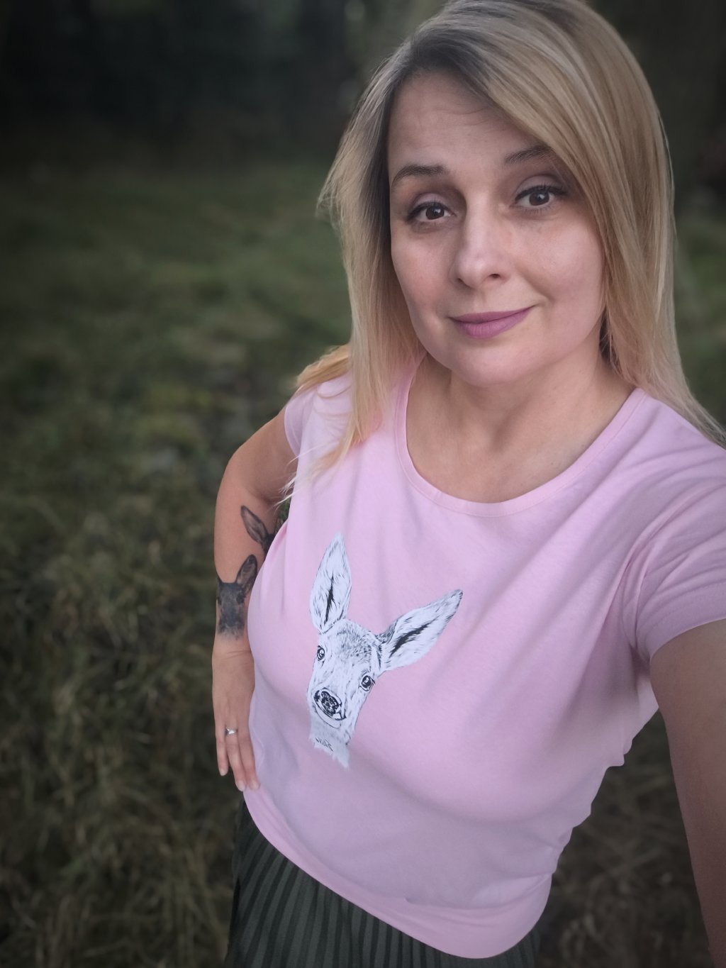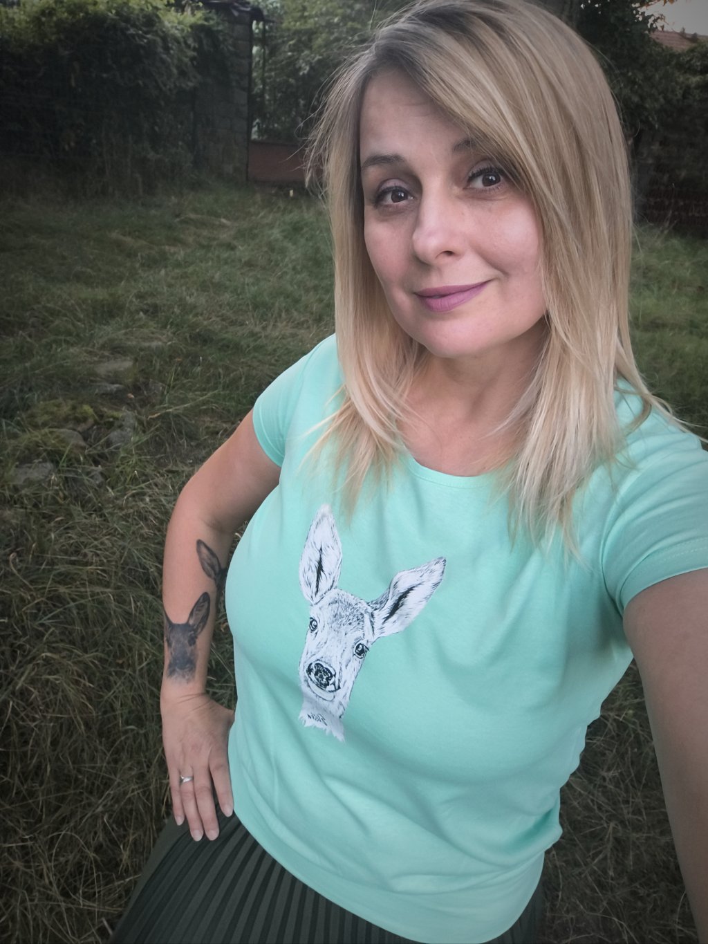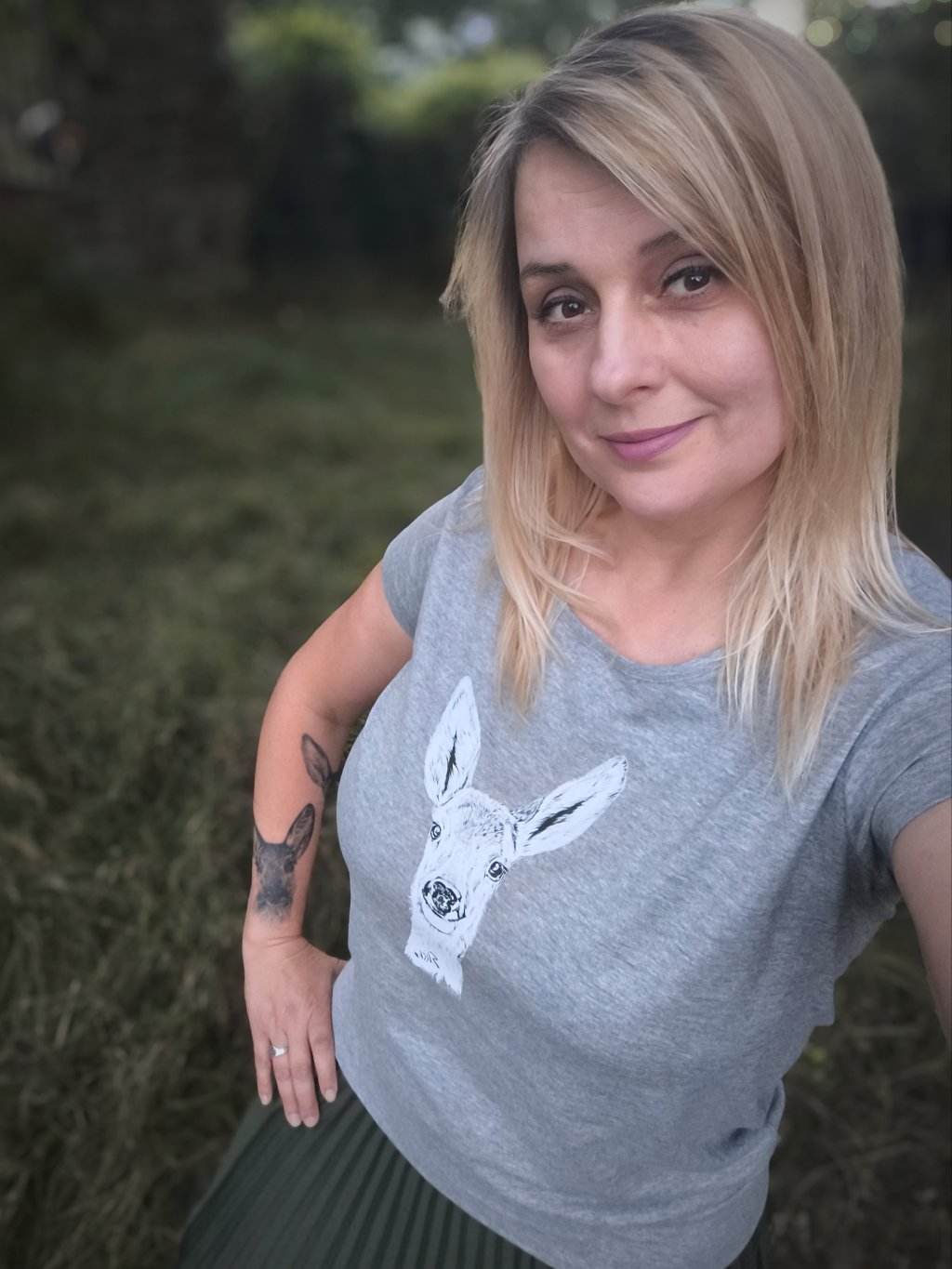 Úžasné dámské bavlněné tričko volného střihu s autorskou perokresbou Elišky, handicapované srnečky. Obrázek je řešen formou nažehlovačky.