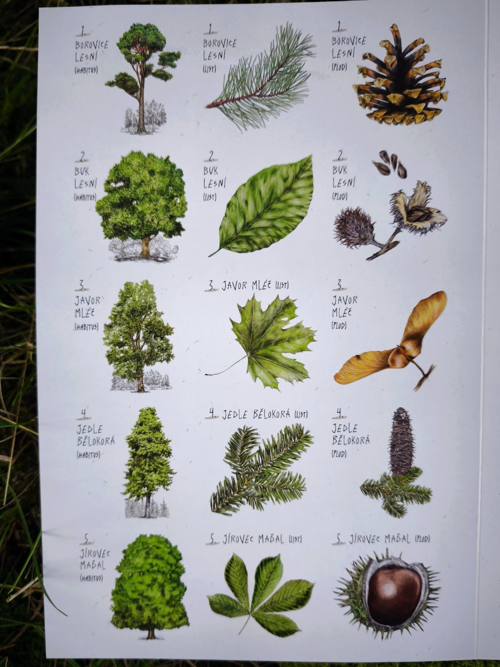 - Ve dvou variantách: Po stopách zvěře - trojici tvoří zvíře, stopa a mládě. Naše stromy - trojici tvoří habitus, list a plod.
