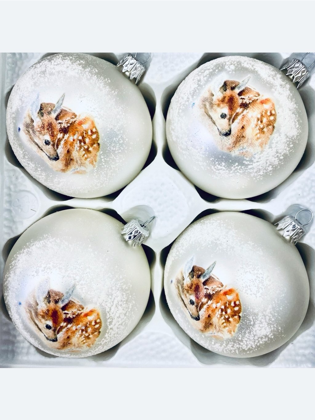 Česká ručně vyráběná vánoční skleněná baňka s motivem Vojtíšků. Na výběr jsou tři motivy: Eliška, Srna se srnčetem a Vojtíšek v klubíčku.