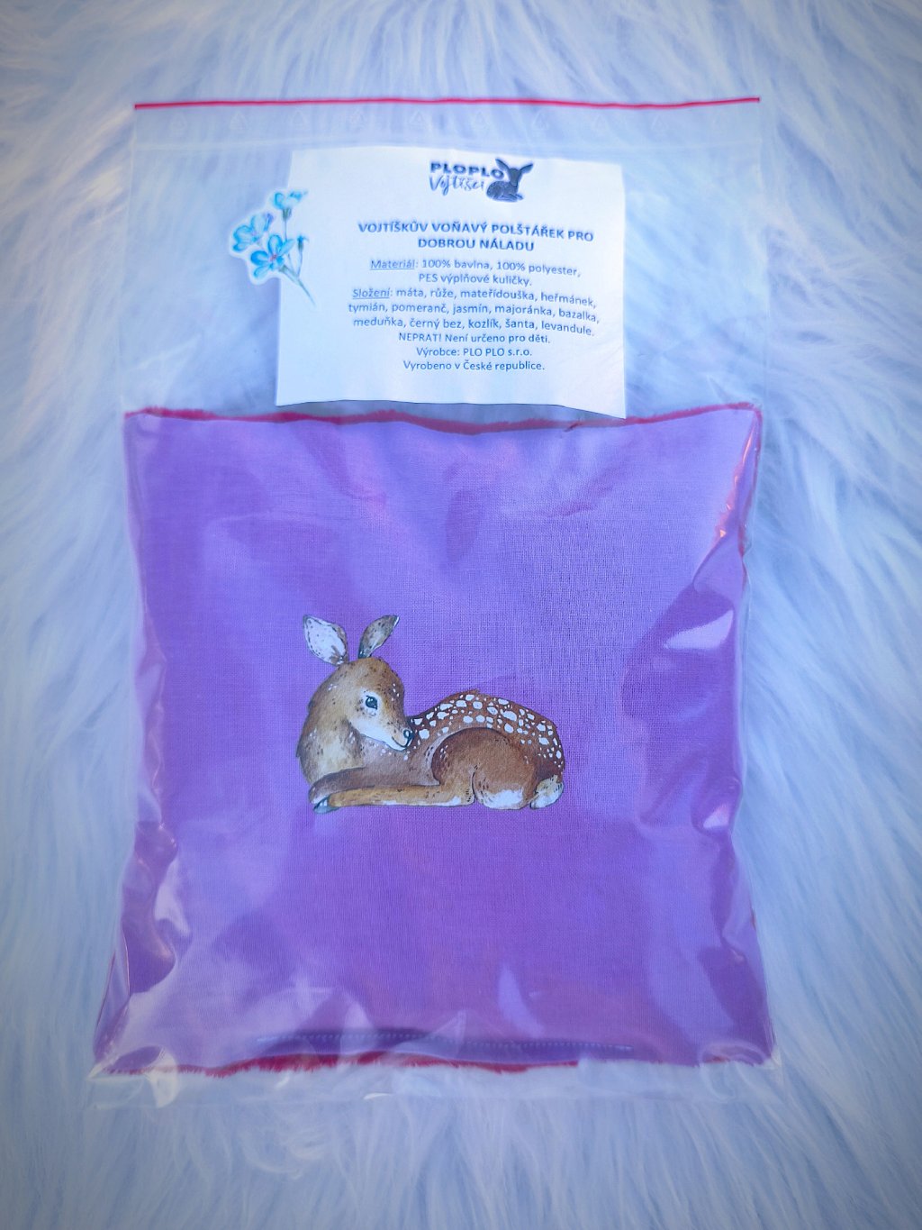 Voňavý polštářek ušitý z bavlny a minky s nažehleným obrázkem Vojtíška.